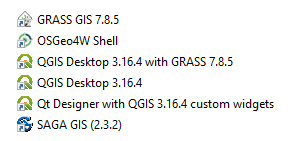 QGISin perusasennuspaketin mukana tietokoneellesi asennetaan QGIS Desktop -perusohjelmiston lisäksi mm. QGIS Desktop with GRASS sekä SAGA GIS. Nämä QGISin perusversion mukana tulevat ohjelmistot tuovat QGISin käyttöön lisää erilaisia prosessointi- ja analysointityökaluja.