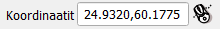 Vie hiiresi Helsingin kohdalle ja tarkastele alapalkin Koordinaatit-kenttää. Koordinaatit näyttävät jokseenkin tältä: