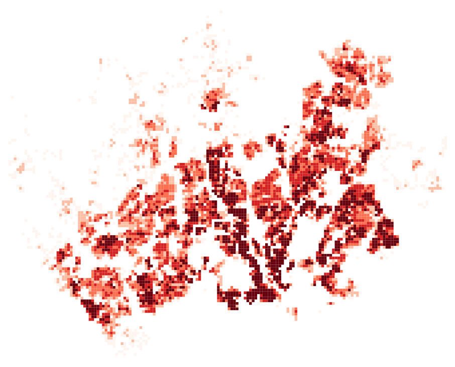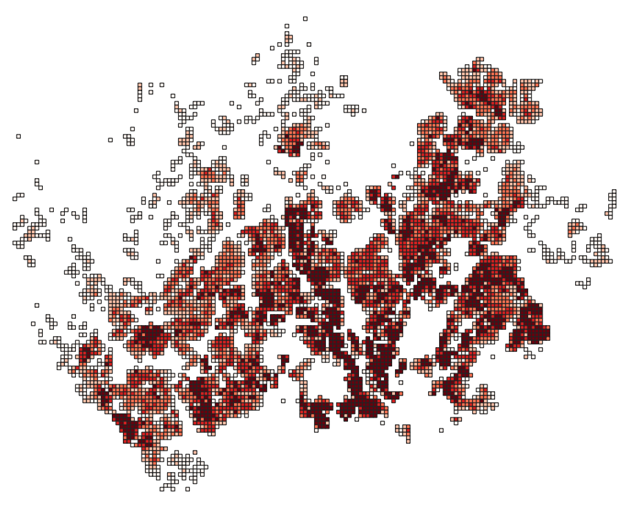 Nyt QGIS näyttää aineistostasi vain ne ruudut, jotka täyttävät annetun ehdon eli joiden kokonaisasukasmäärä on alle 5000.
