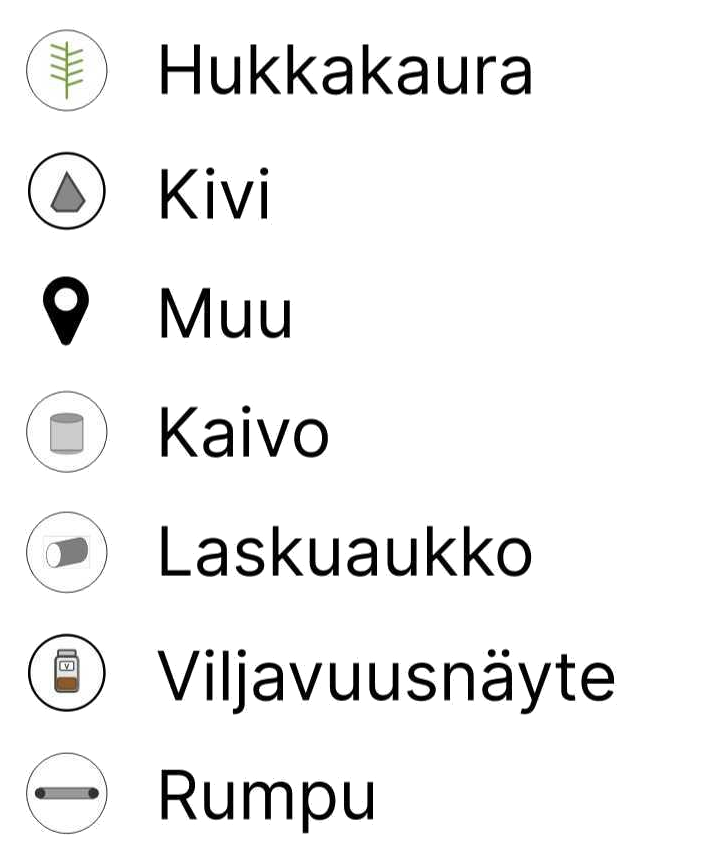 Uuden kohteen lisääminen sijoittuu automaattisesti omaan sijaintiisi. Tämän voi muuttaa asetuksista, napauta oikeasta alakulmasta